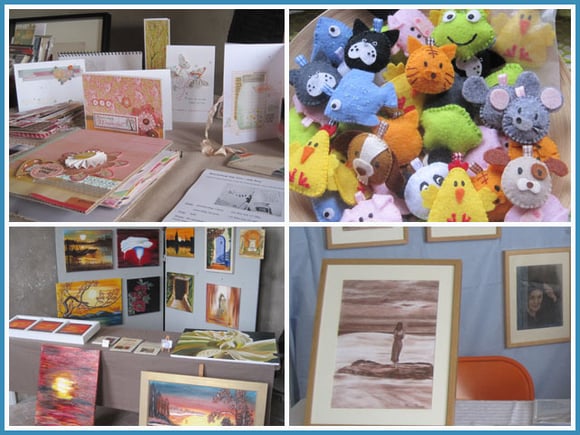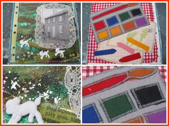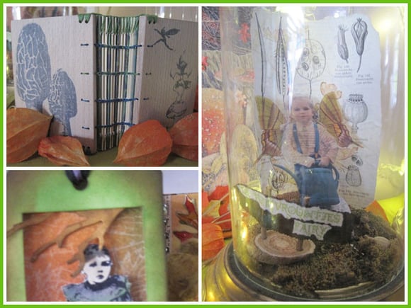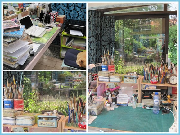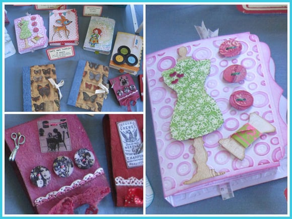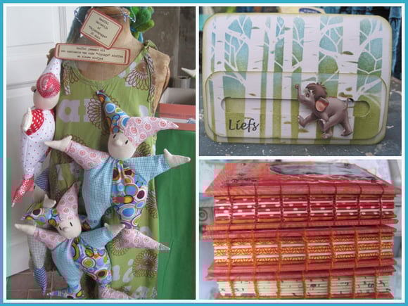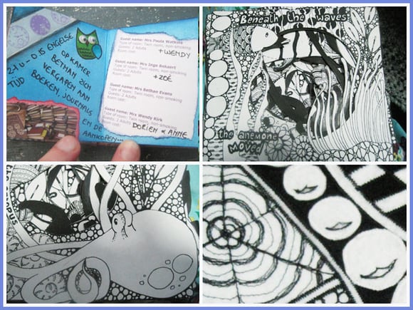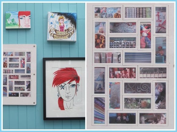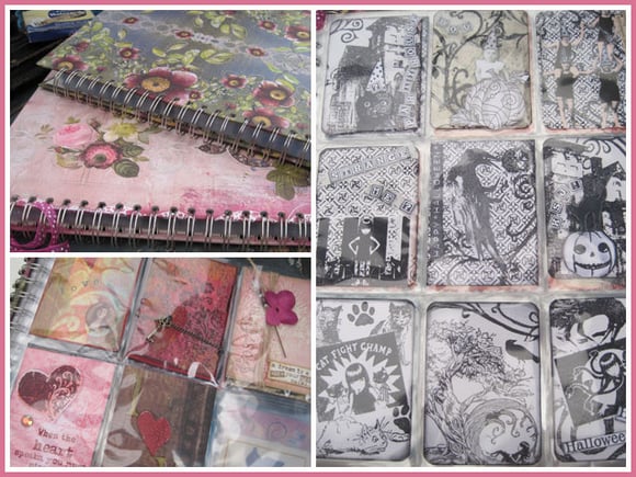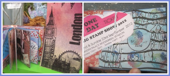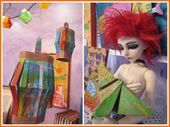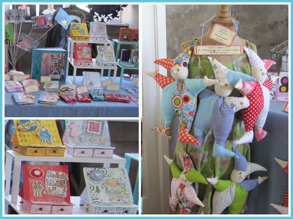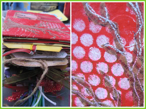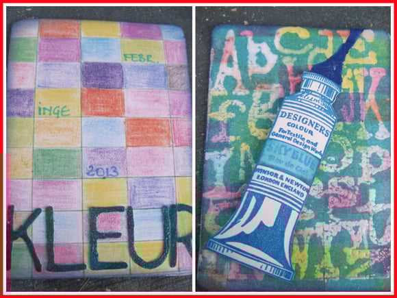 I took some photos of examples of the workshops that have been going on the previous days. I just forgot whom these creations are from... but they attracted me : left one for the collage, right one for the colors.