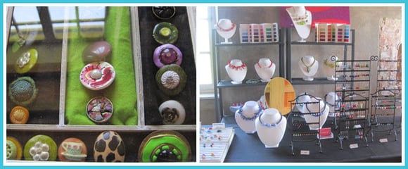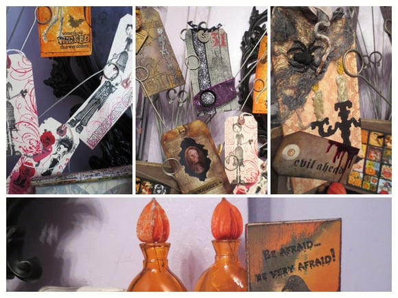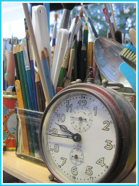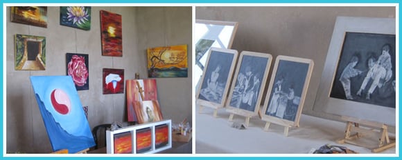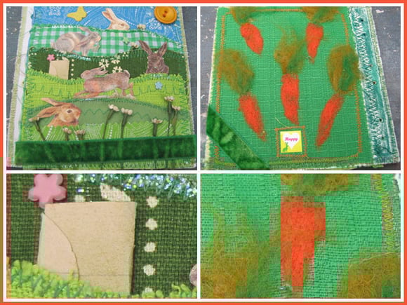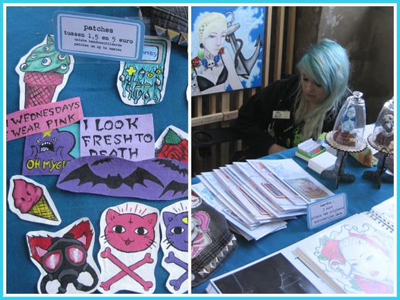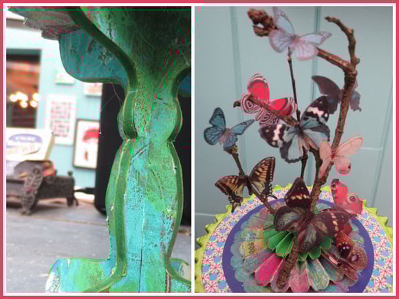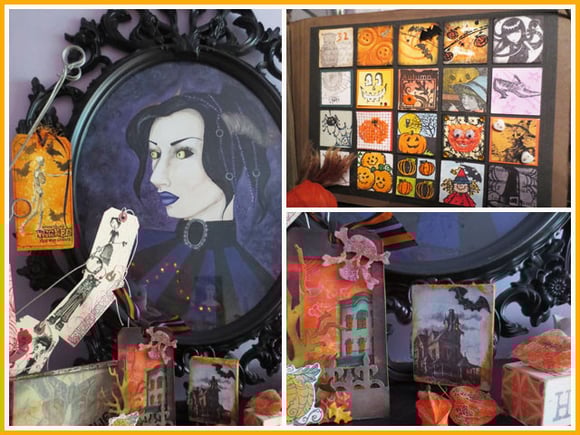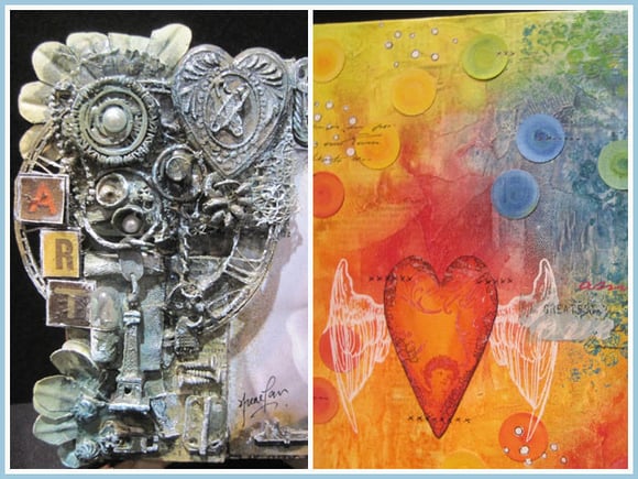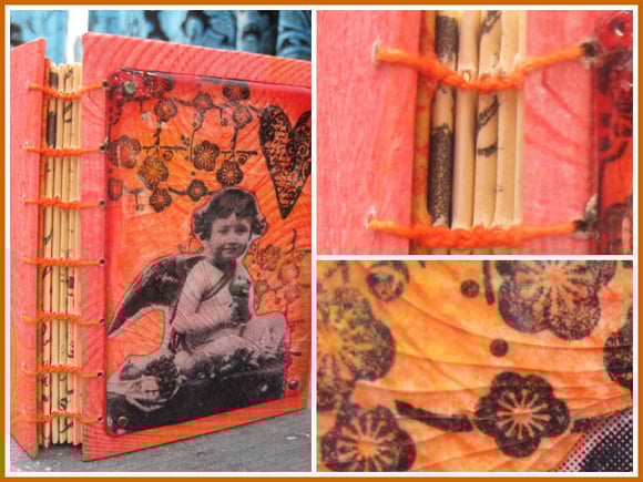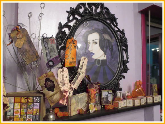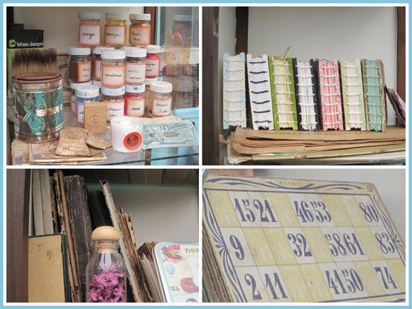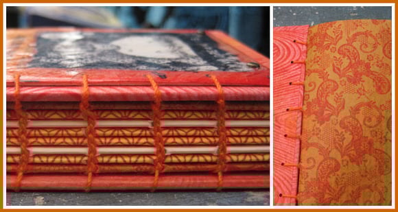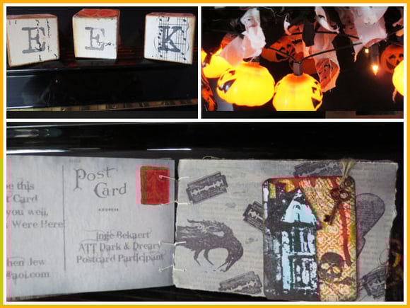 I took some photos of examples of the workshops that have been going on the previous days. I just forgot whom these creations are from... but they attracted me : left one for the collage, right one for the colors.