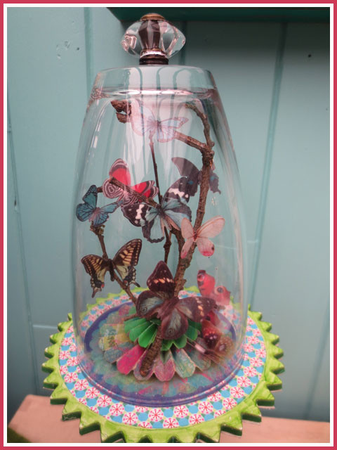 The glass dome is from IKEA and is about 20 cm high and 9 cm wide (7,8 inch hight, 3,5 inch wide).
