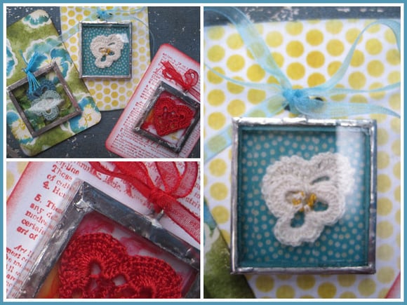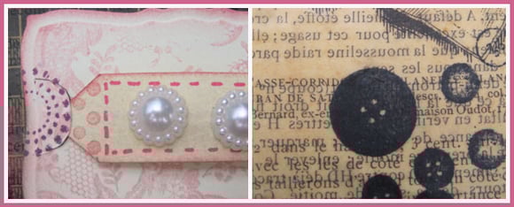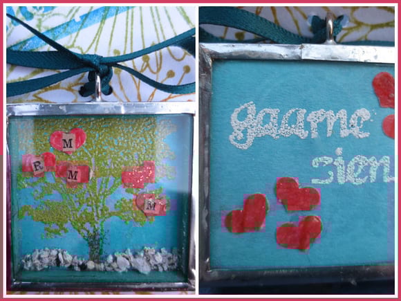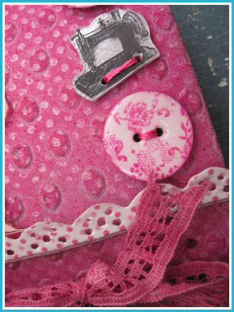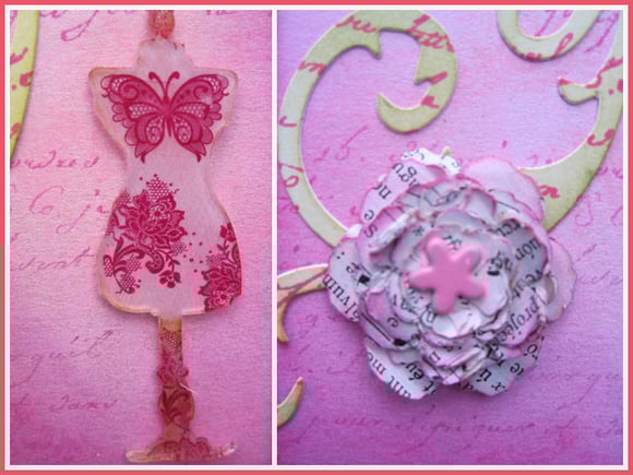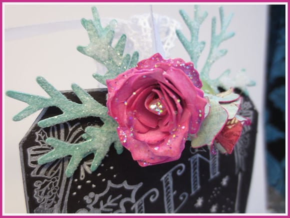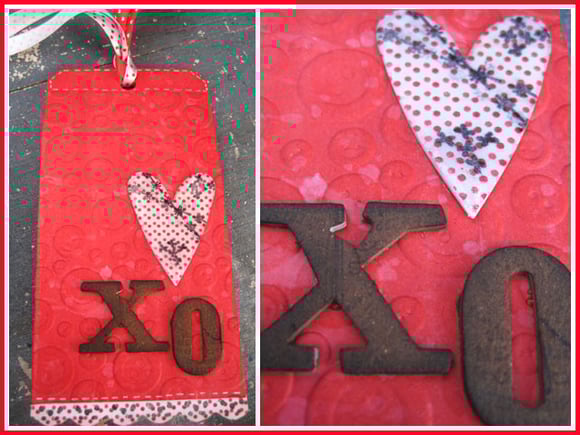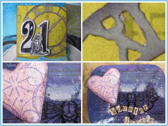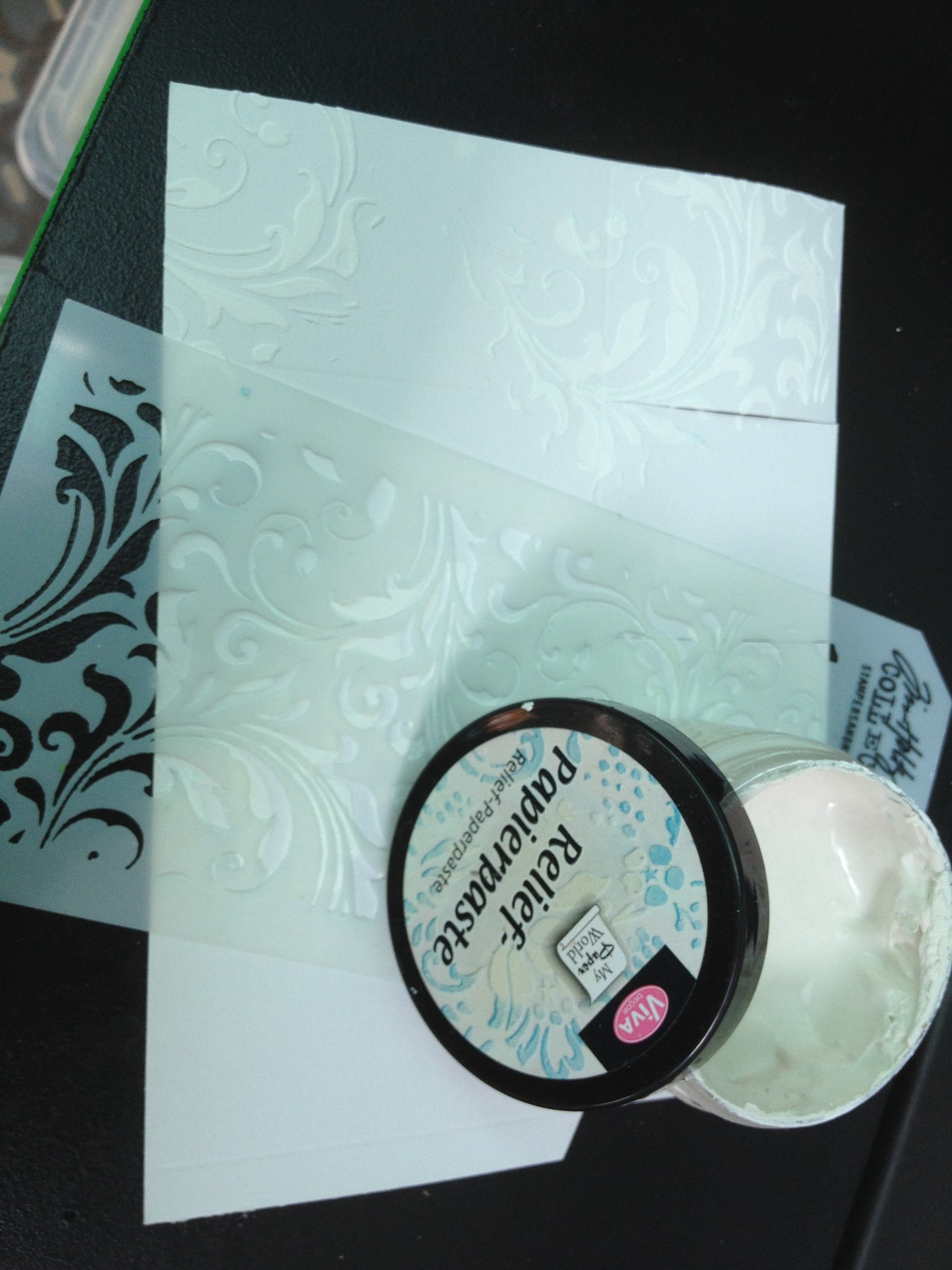 The heart was made with UTEE and colored with white dabber paint and then with perfect pearls. I stamped on it with stazon.