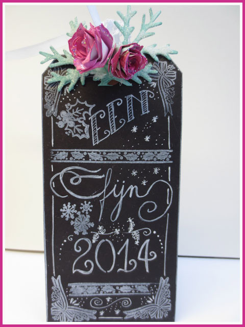 The stencil "jarig" was designed by me and cut out with my scan n cut from Brother.
