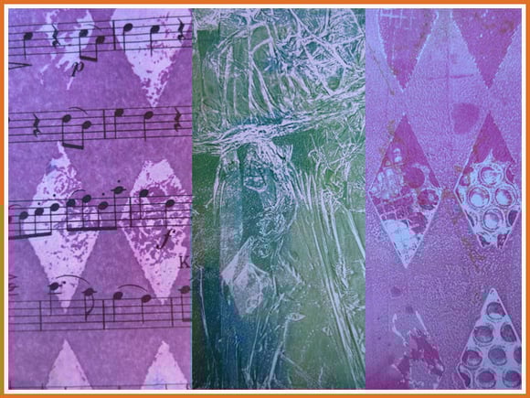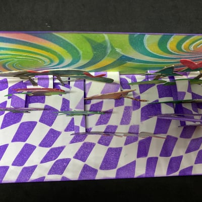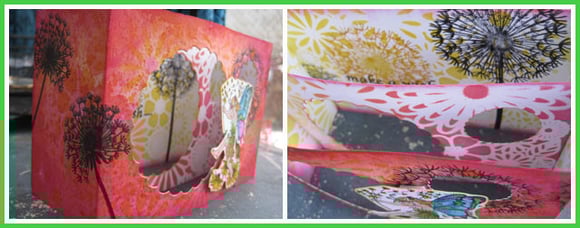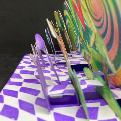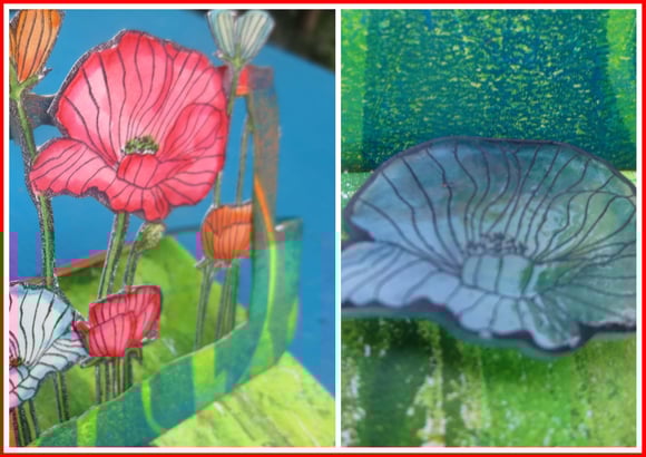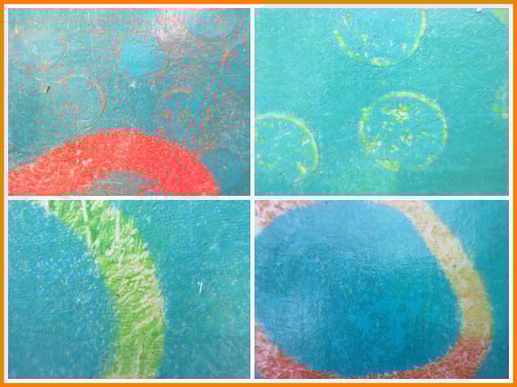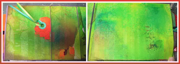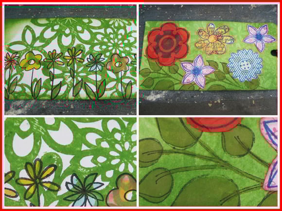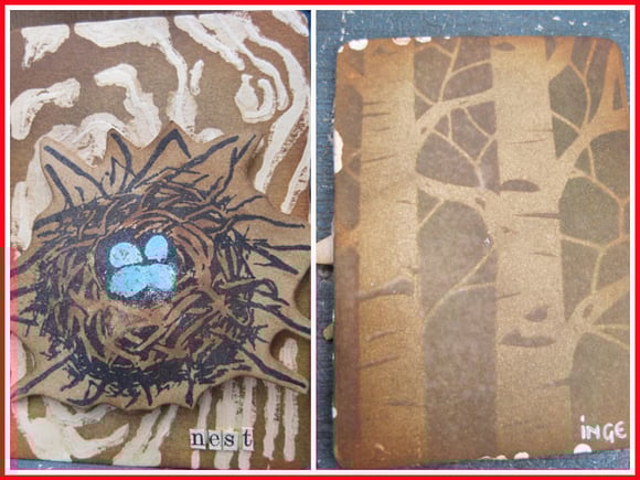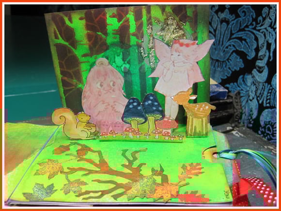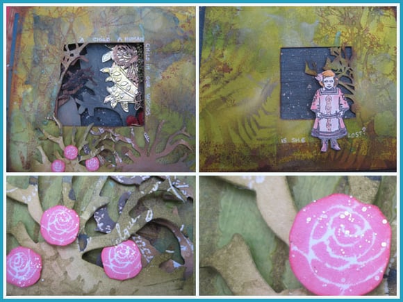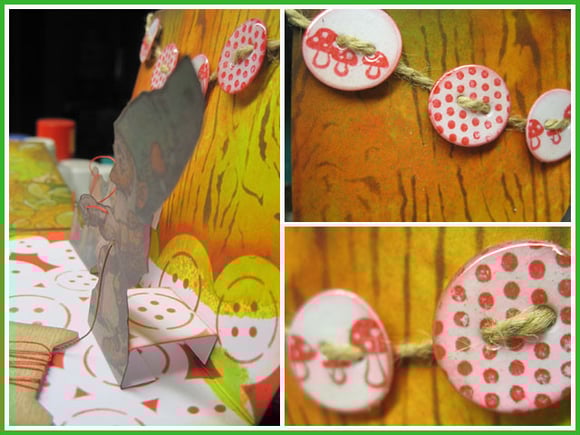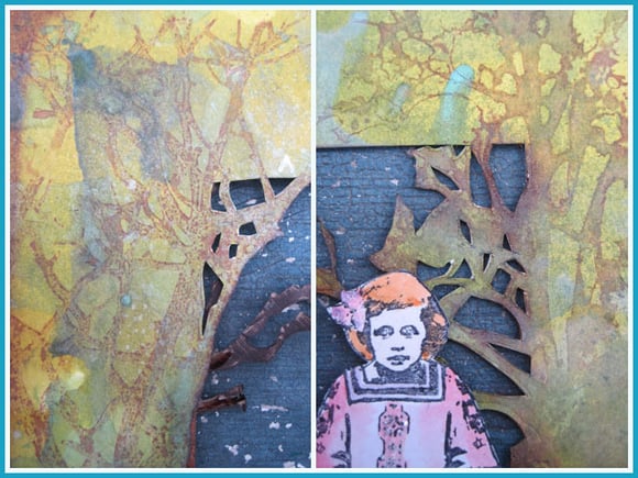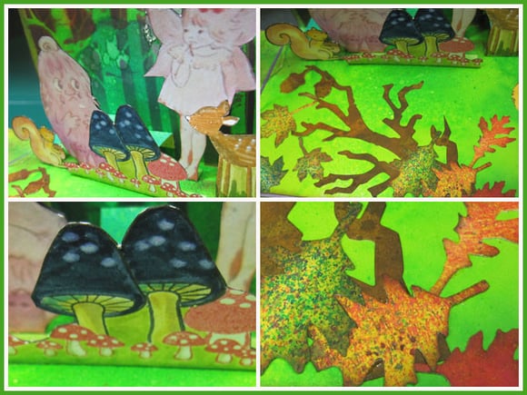 The colored inked backgrounds were used to make the psychedelic trees and toadstools.