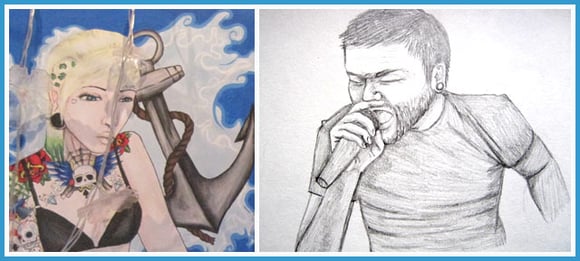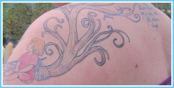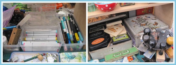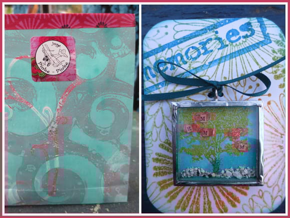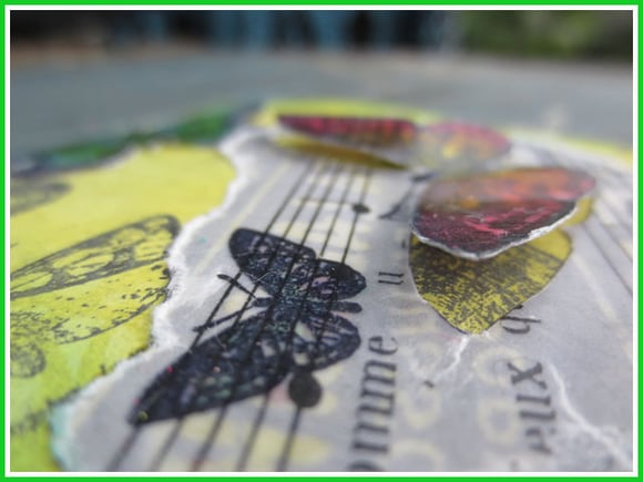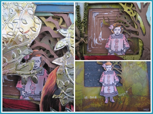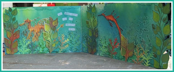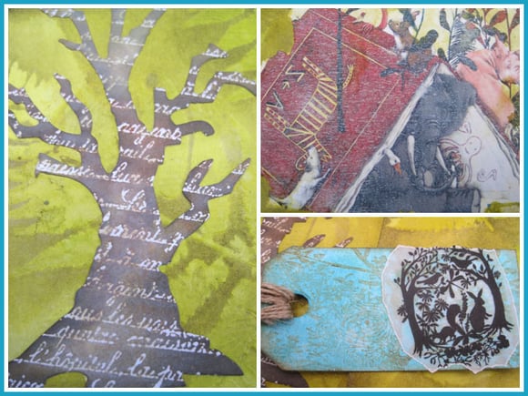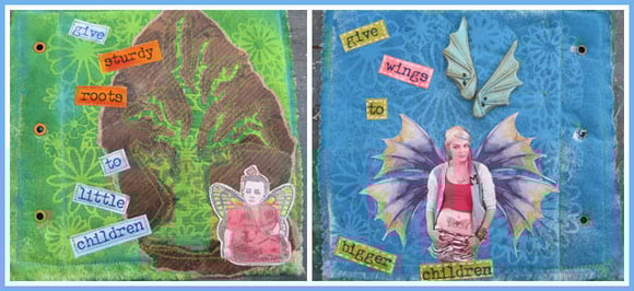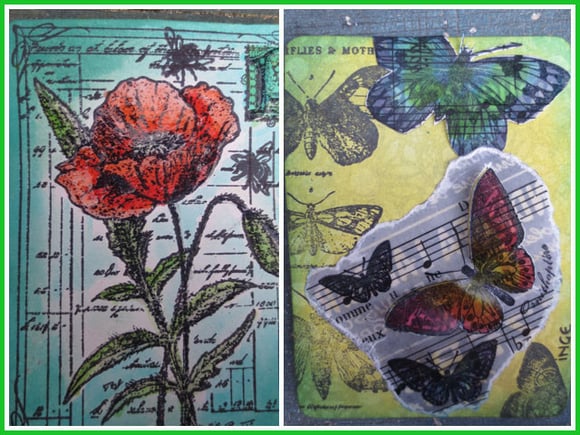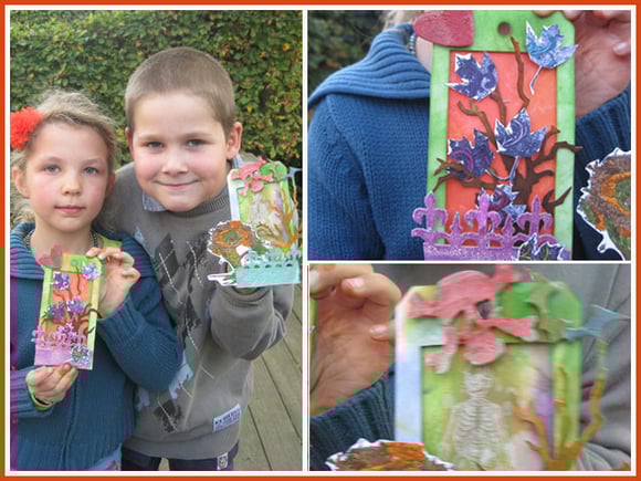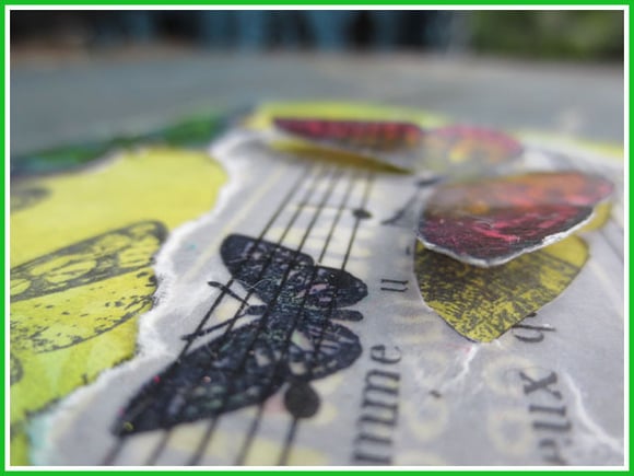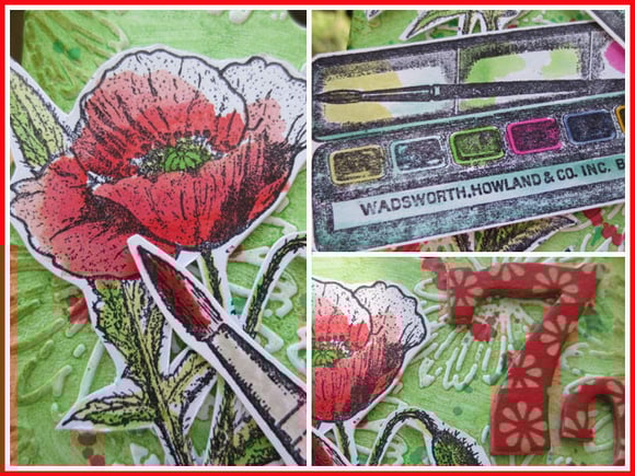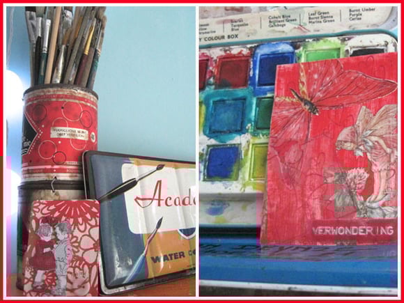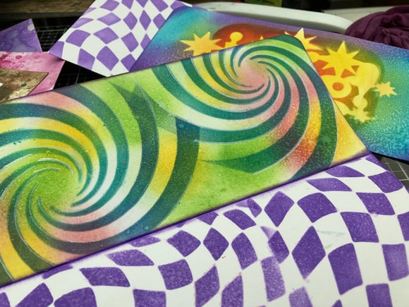 The colored inked backgrounds were used to make the psychedelic trees and toadstools.