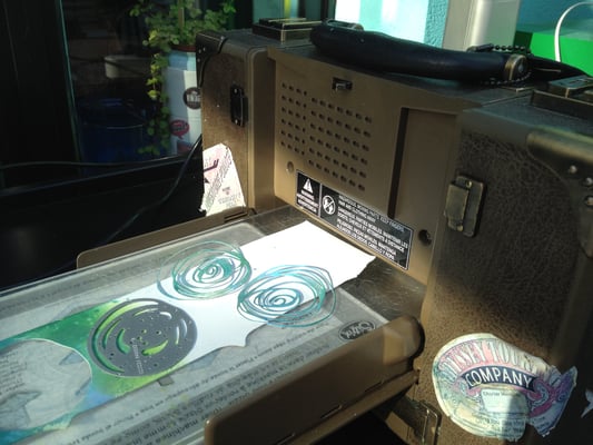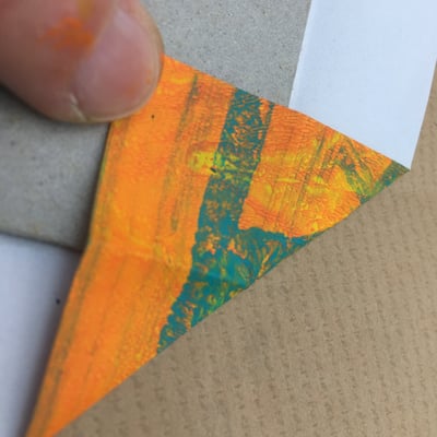 Between every layer the paper is dried with a heatgun, so the inks get layered and don't mix.