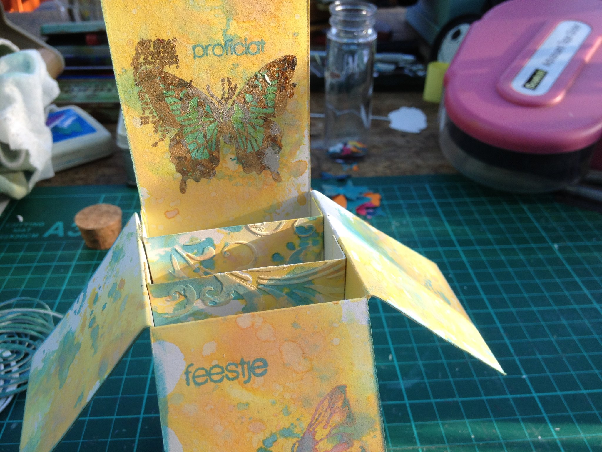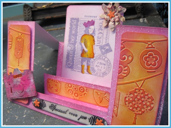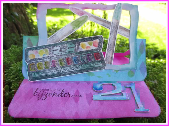 All the people I send a birthdaycard to this year will recieve an easelcard. They are quite easy to make, but fun to create and I love how the cards opens and stands up.