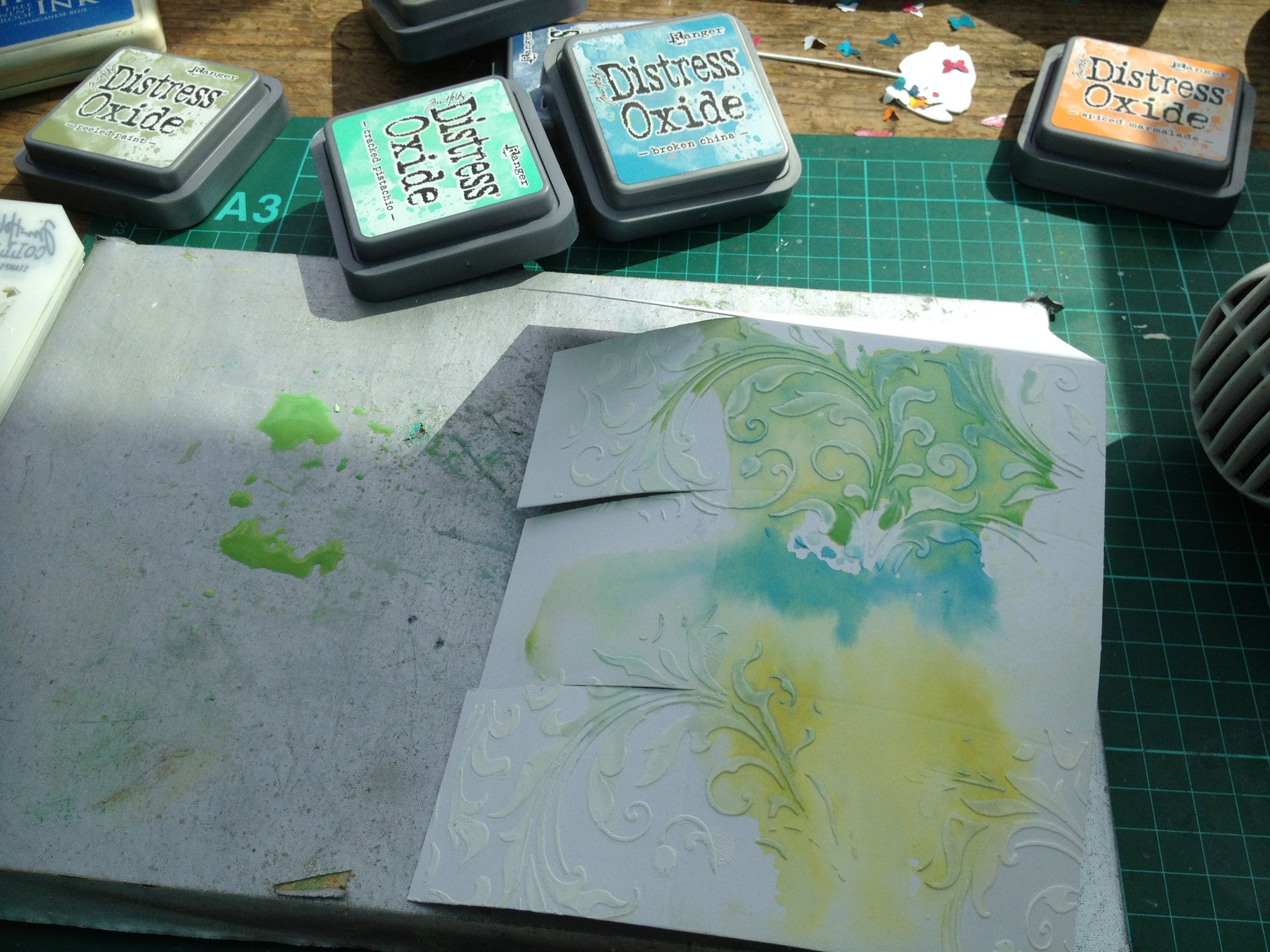 You can find a lot of youtube videos of Tim Holtz for this technique or you can have a look at his lives where he shows how you can use distress inks in different techniques.