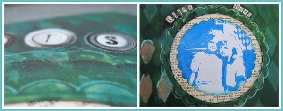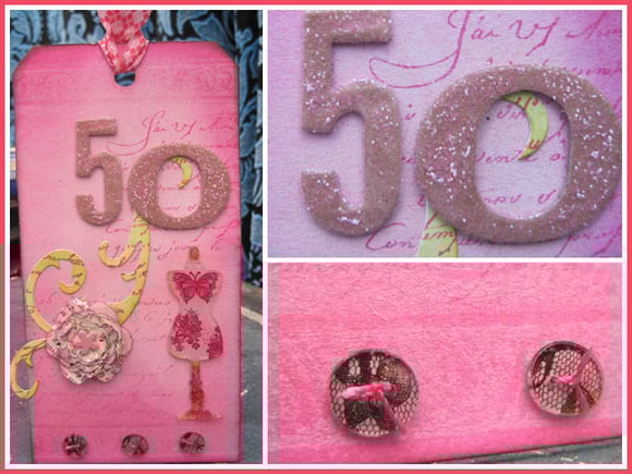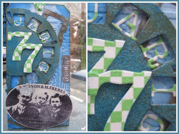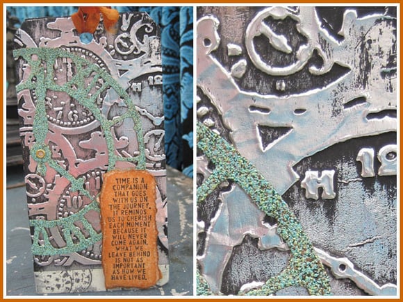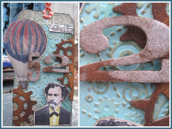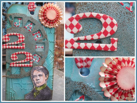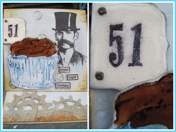 The "51" tag was made with the faux enamel technique of Shelly Hickox.