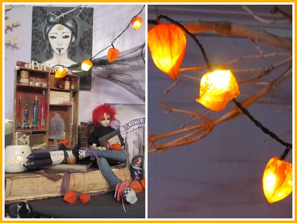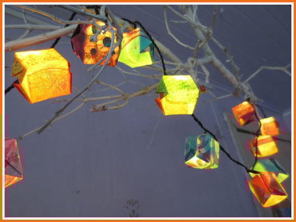 This stick holds up the string of ledlights I twisted and let dangle like the shape of an umbrella.