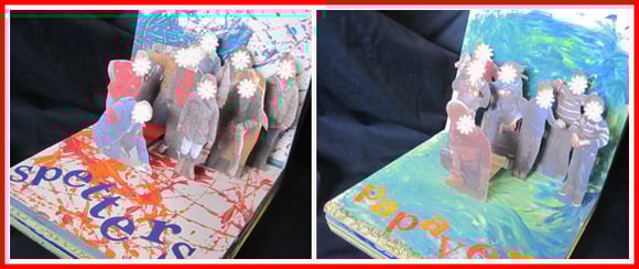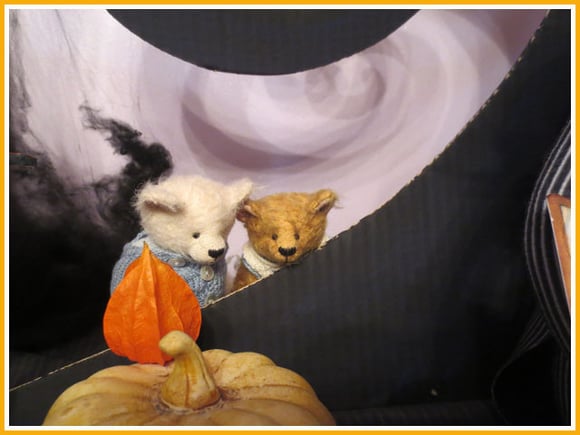 Here you can see the right page opened. The mini-bears from Anne Bearheart are as curious as children and adults were to see the show !