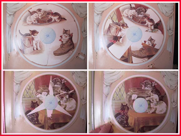 So, I was looking for pop-up books with the different systems. The books with the tabs can easily be found even in today books, but what about the cascading images and the rotating images?