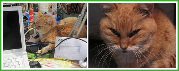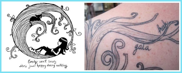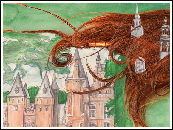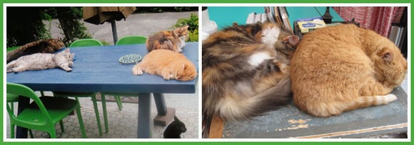 The drawing is from a painting my mom made of our house with cats in her own imaginary way.