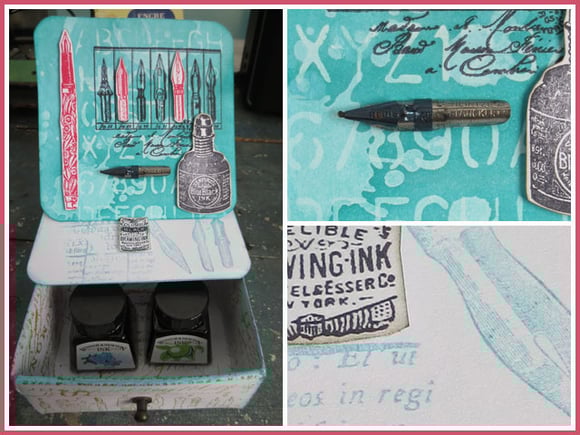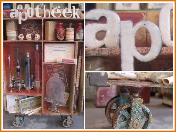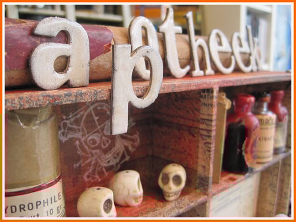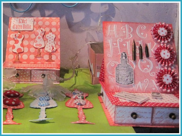 It started with the new stamps I recieved lateley from oxford impressions.My favorite parts on this project are the lioncagestamps on the drawers and the rosette with the circusbanner.