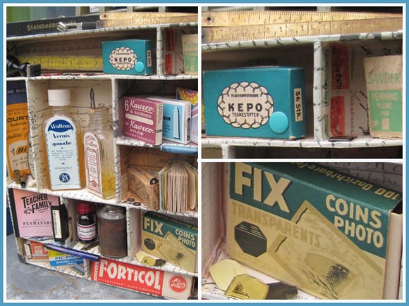 On the craftshow I found a plastictape with vintage images. I used one on this box as an extra layer and added the word " koesterdoosje" ( cherishbox) with letters cut out of an old book.