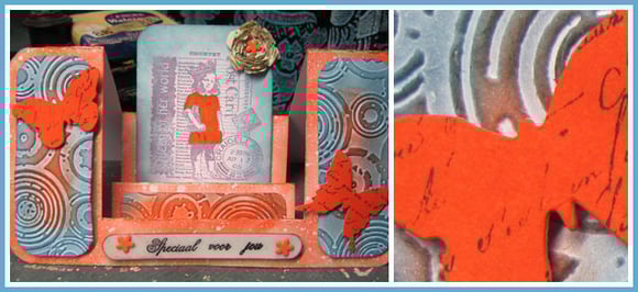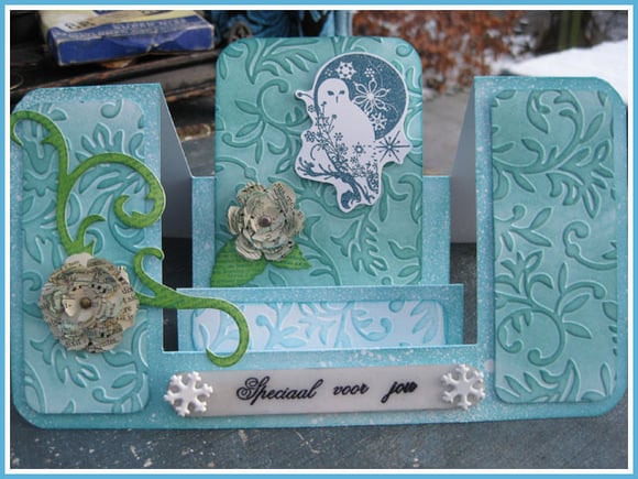 This means I now got MORE embossing stuff, cause I do have several of these stencils. It surely gives more possibilities to create and use. I really, really love these stencils and Paula, just another kiss from me for showing these stencils to me in London in 2009 !