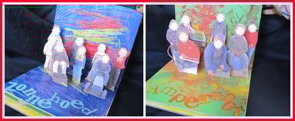 When you open this right flap the pop-up of the puppetry opens and you can see two dancing children ( "Ot and Sien", well known figures in the Netherlands)