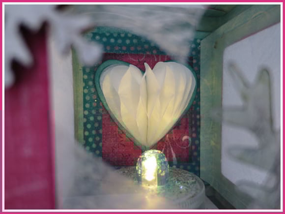 I pressed the ledlights between two hearts. Some papers are translucent, other let the light shine from the sides,..