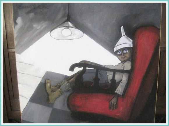 They hold their ticket for the Punch and Judy show.( "admit one "ticket from Tim Holtz)