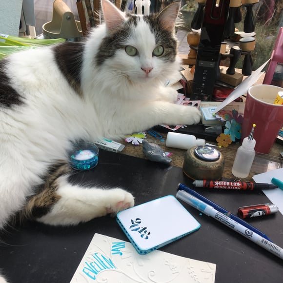 Give me white paper, inks and paints, stamps, scissors and a cutting knife,... and I will turn it into a colorful creation !