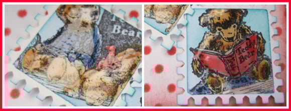 The paperletters are made with the envelopstamp of my Alice in Wonderland stampset from Oxford impressions.
