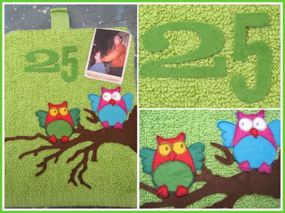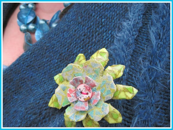 I also added flowers made from the previous apron, a blue one, that my mom gave me 10-20 years before ?