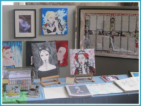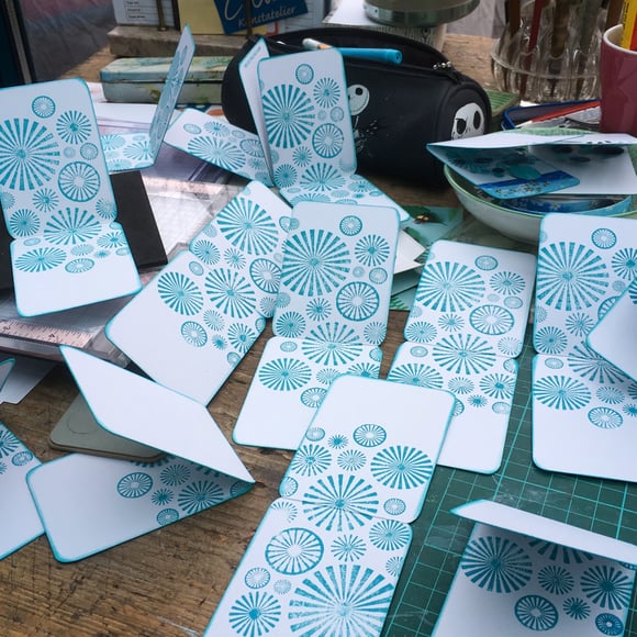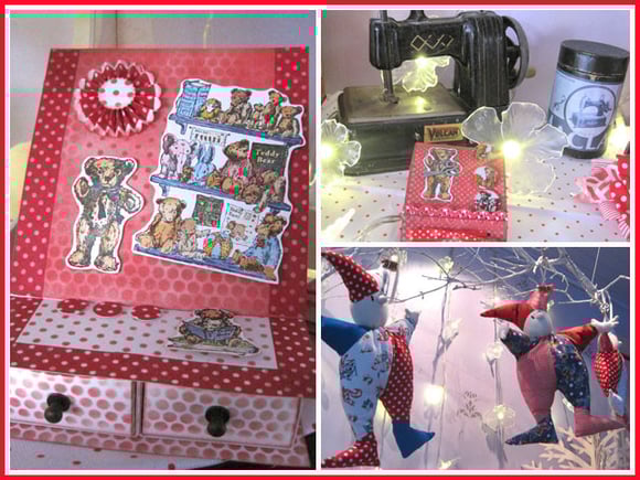 The print shows all kinds of things I make: sweets, books, softie harlequins, postcards, pop up cards, 3D projects,...