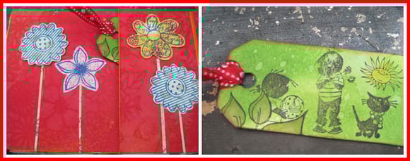 On the back of the tag a hat and a Punch-toy from the oxford impressions circusstampsset.